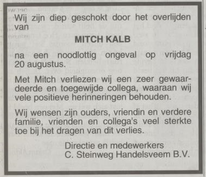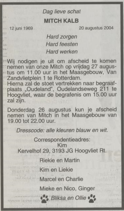 Mitch Kalb, man (12-06-1969) uit Hoogvliet. Hij laat een vriendin na.